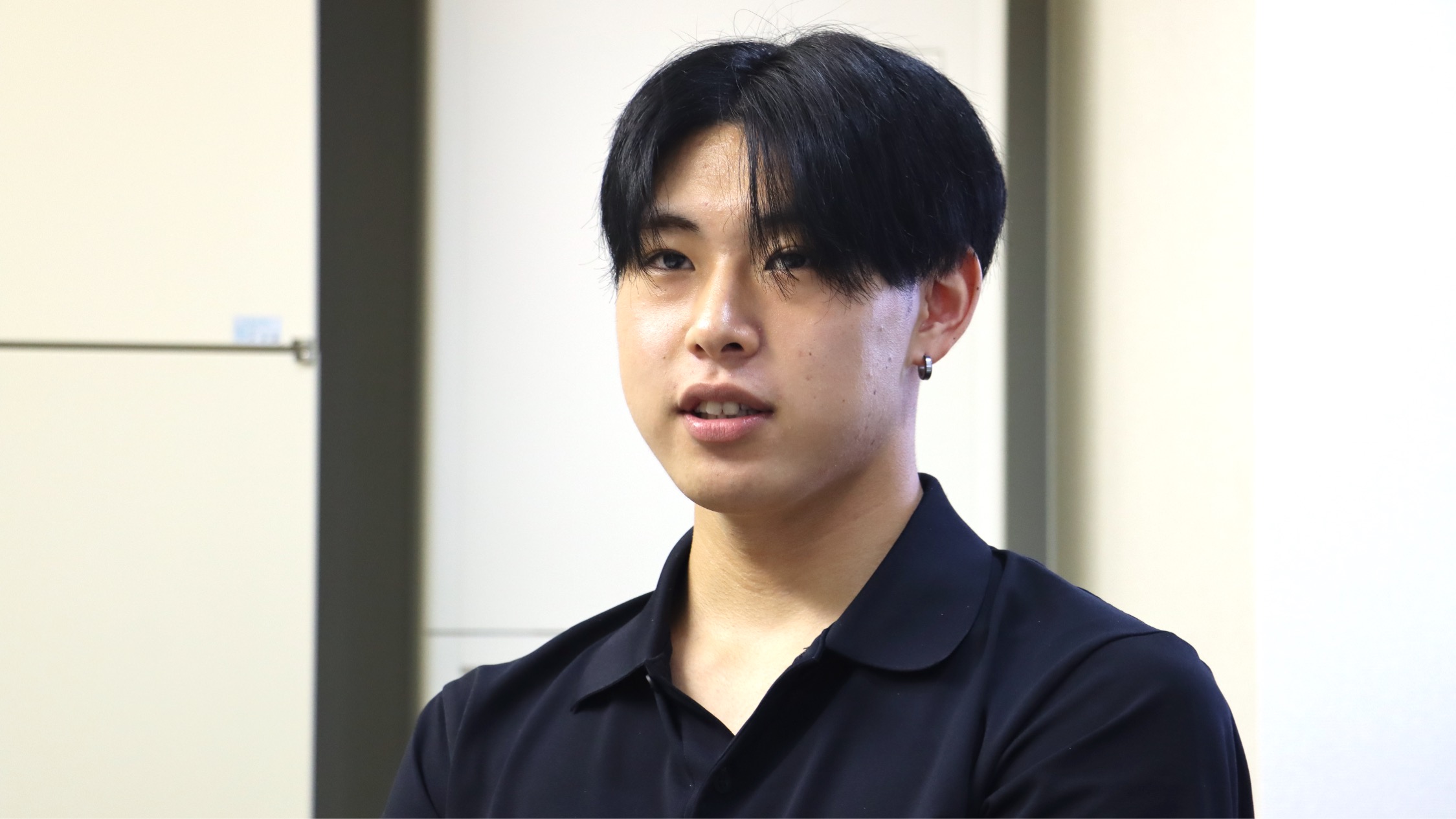 「奈良 瑞己といいます。青森市出身です。青森公立大学の1年生で、工藤さんの後輩です。地域経済論などを学んでいて、ゼミでは“経営者に話を聞いてみよう”というテーマで活動をしたりしています。ハンドボールの経験があり、身体を動かす事が好きです」