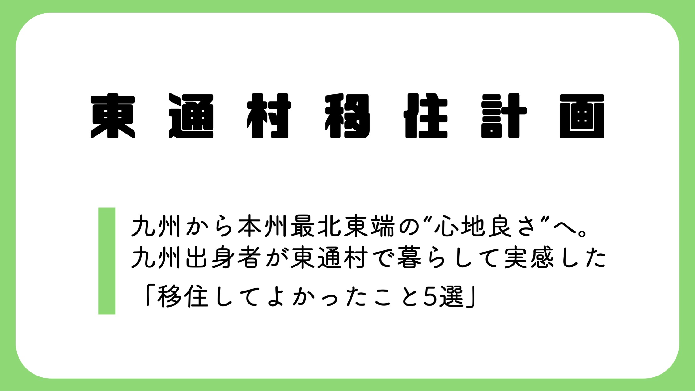 東北地方の“静けさと涼しさ”に魅力を感じる方にとっては、東通村はきっと有力な移住先候補になるはずです。